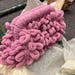 Add a touch of charm and whimsy to your look with this unique handmade envelope bag. Expertly knitted with soft, fluffy pink yarn, it boasts a distinctive puffy texture that gives it a girly, playful aesthetic while maintaining an elegant clutch like silhouette. Whether held in hand or tucked under your arm, it's the perfect accessory for casual strolls, evening outings, or special occasions.